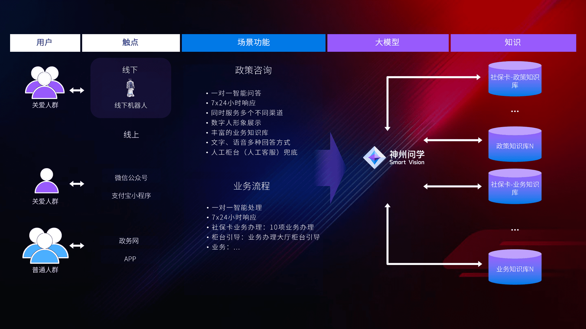 • 线上线下全覆盖:线上提供微信公众号、、、支付宝小程序、、、政务网、、、、app多种渠道,,,,与线下机器人形成完整服务体系。。。。
